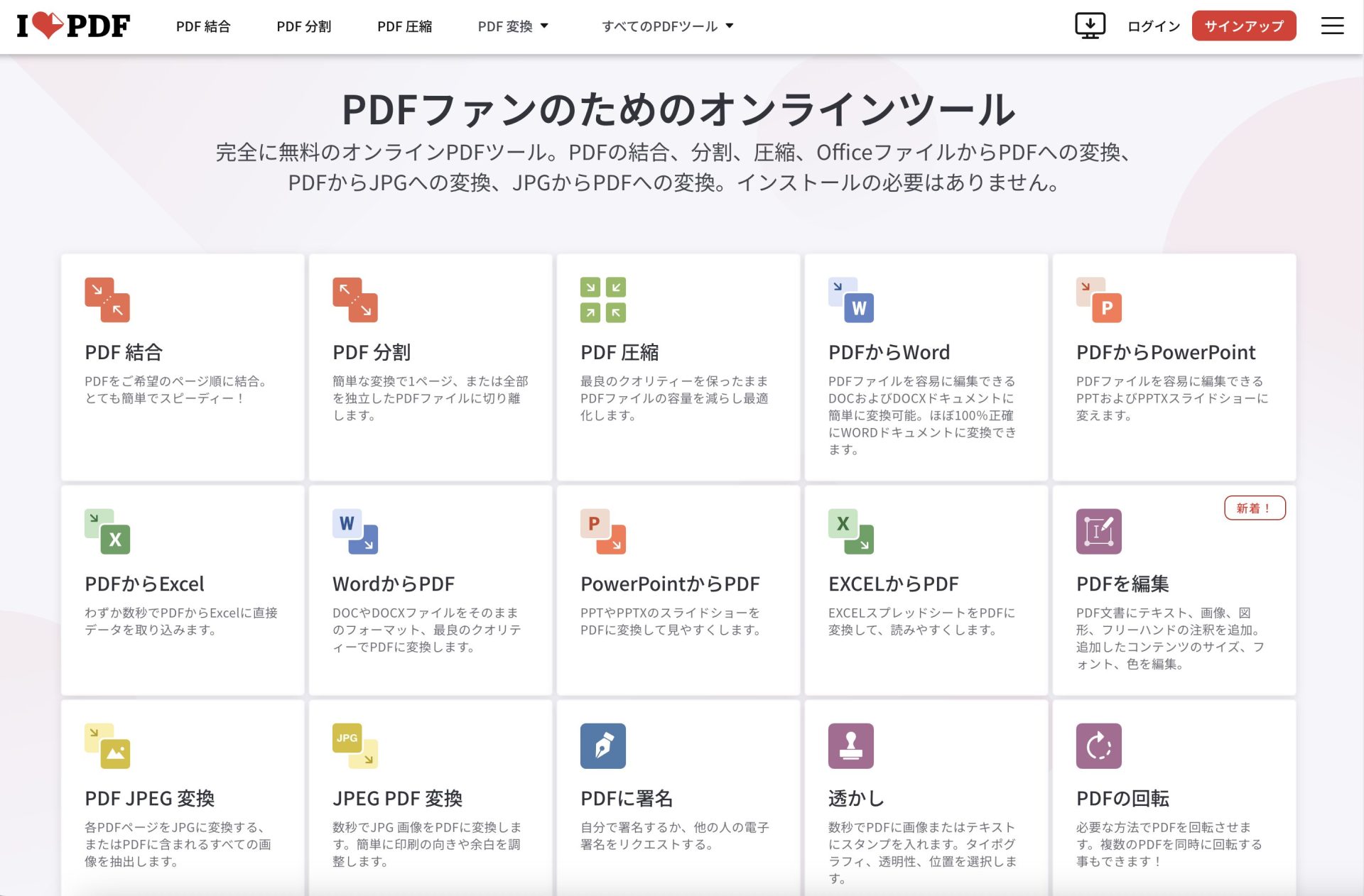オンライン上でPDFファイルを加工できるのでとっても便利なのです。
