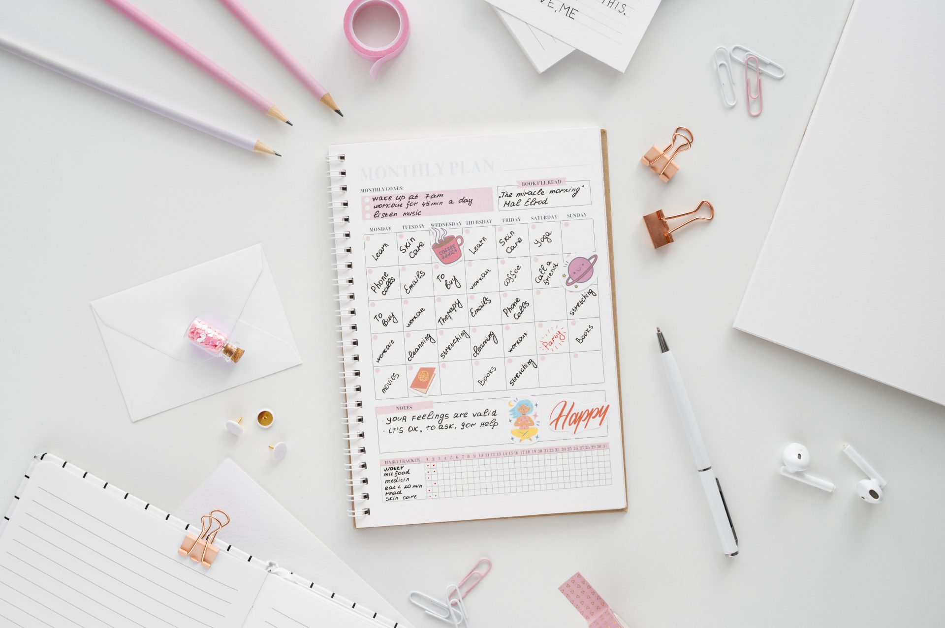 私も日々のタスクはバレットジャーナルに書いて、パソコンの横に置いています。
