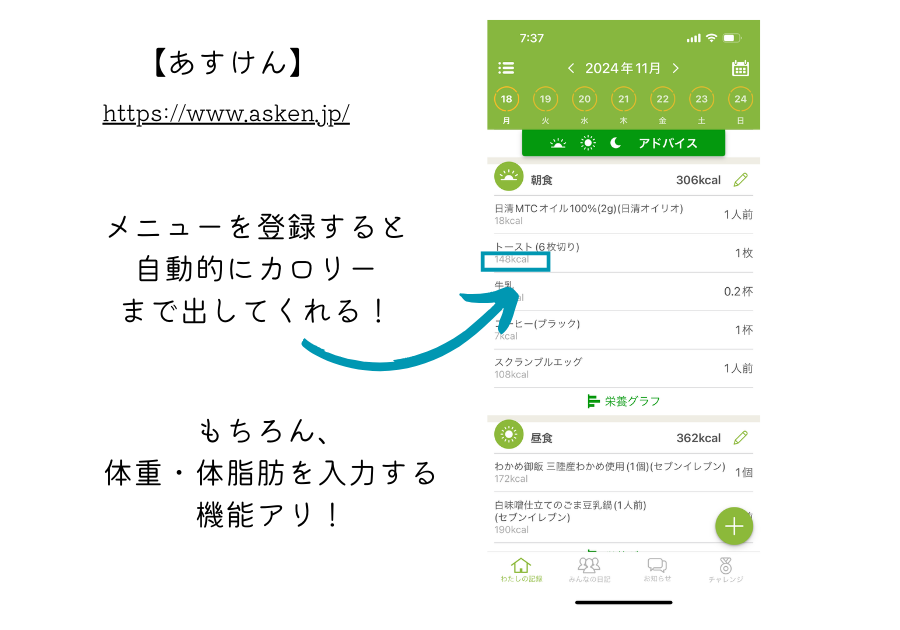 私は「あすけん」というアプリで、