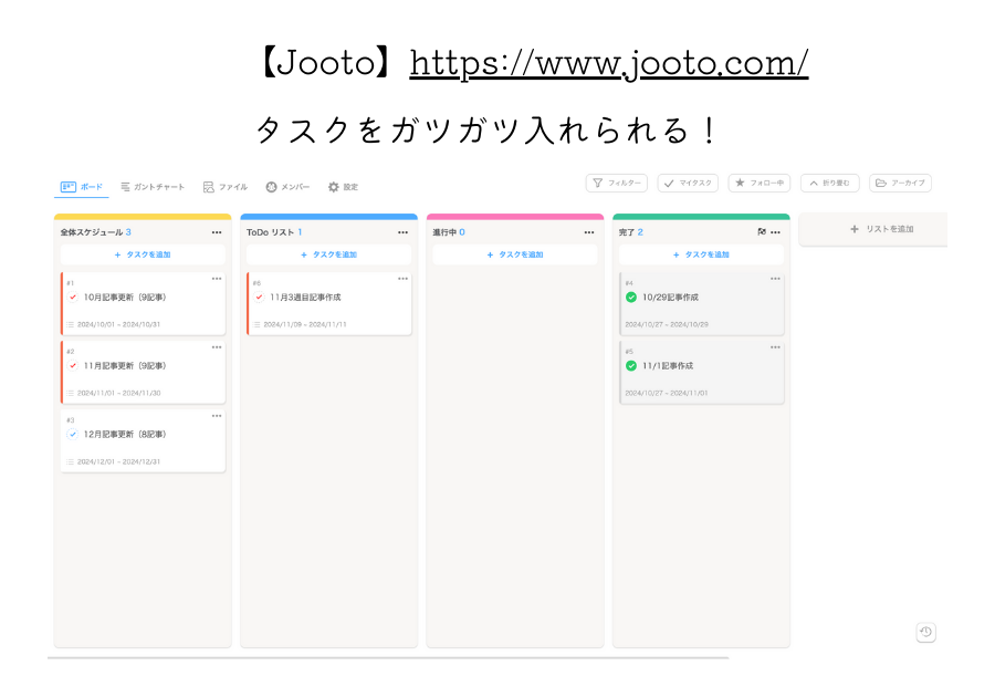 Jootoというプロジェクト管理アプリを使っています。