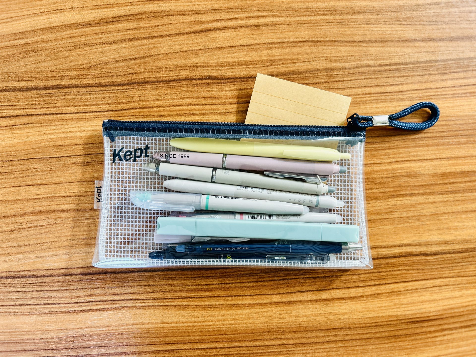 ペンケースの中に付箋を入れておく!!です。