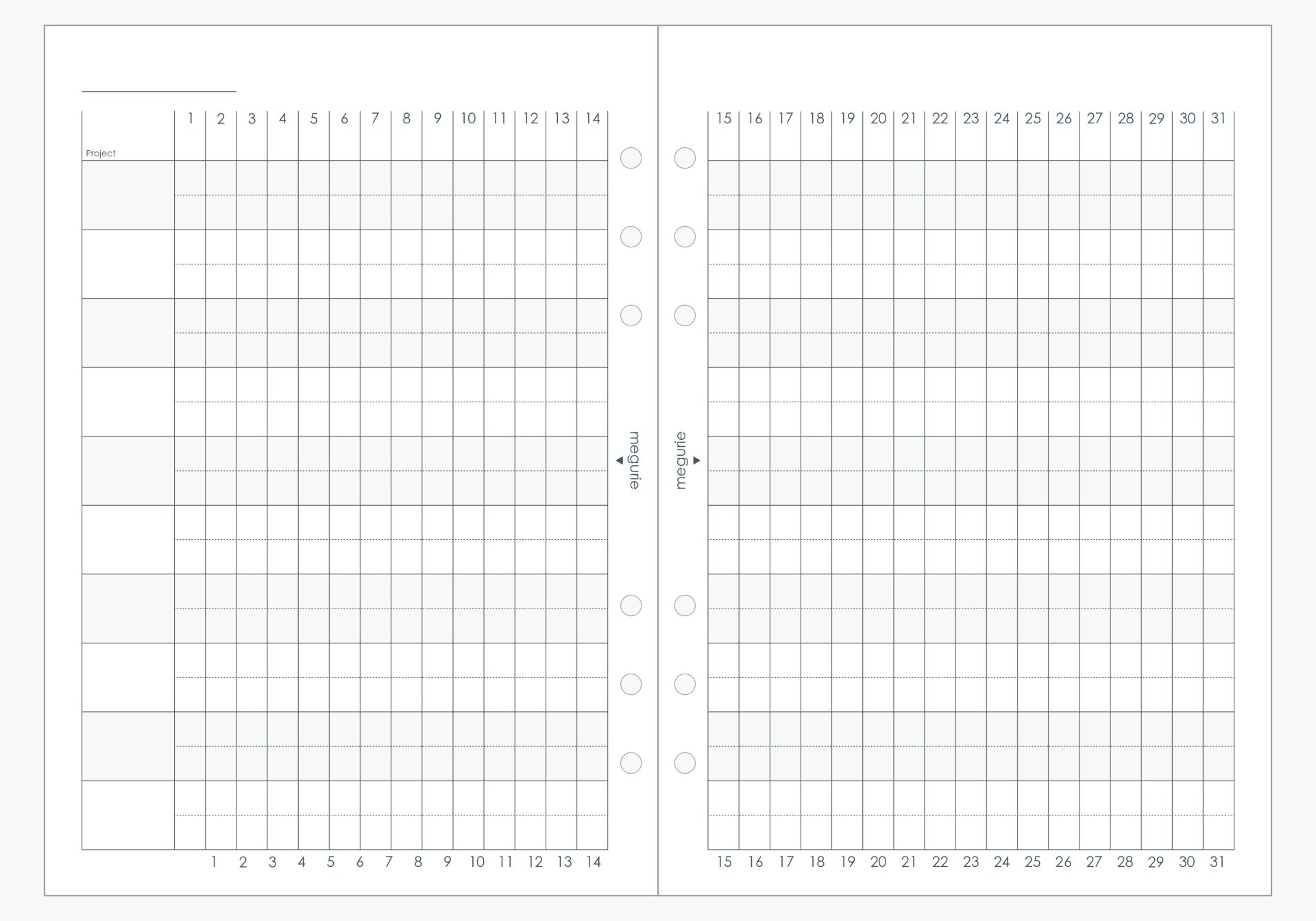 【Monthly】ガントチャート Type|システム手帳無料リフィル