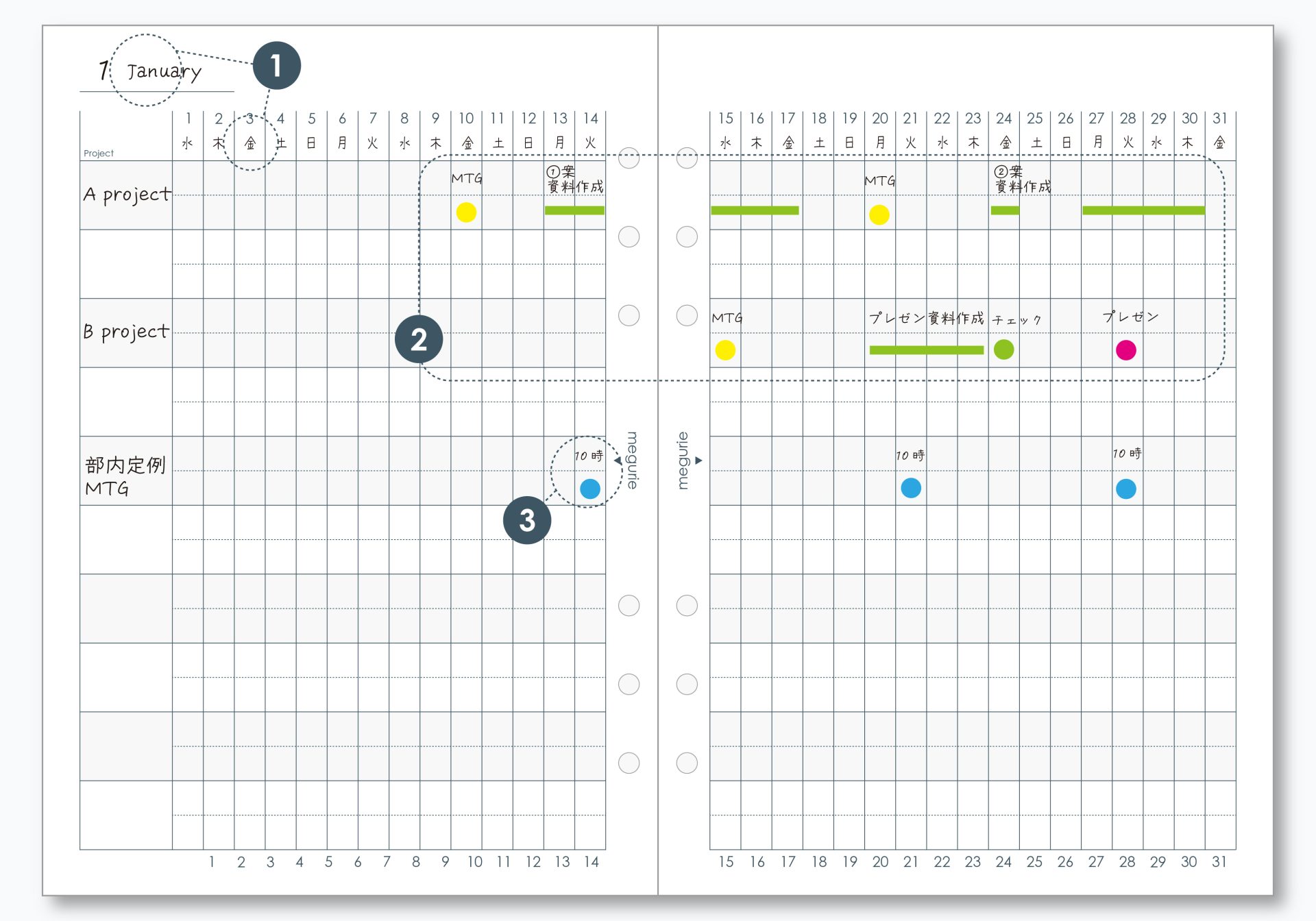 1ヶ月を横軸で確認できるガントチャートプランナー。