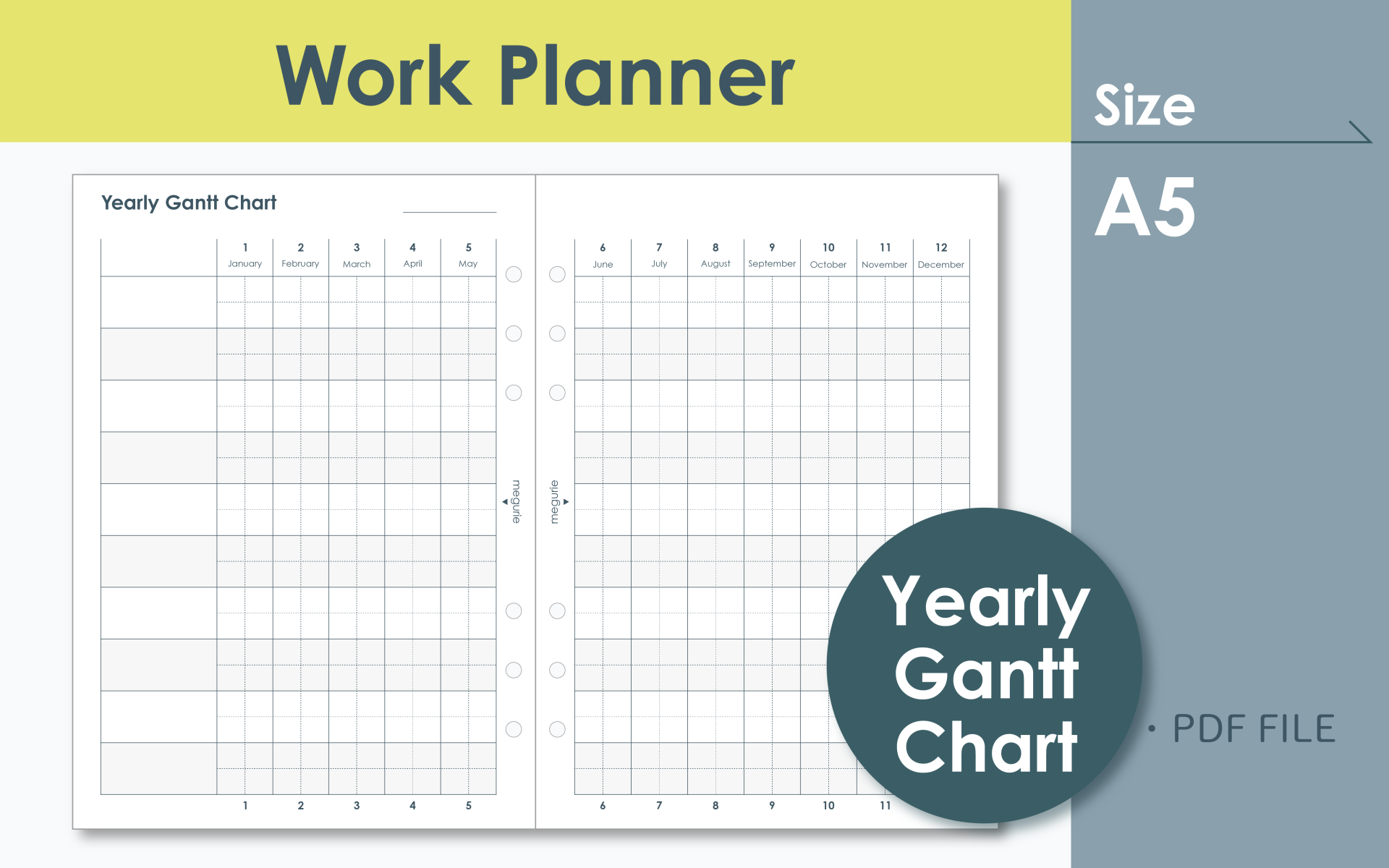1月始まりの年間ガントチャートと、使いたい月から開始できる月表記フリーの年間ガントチャートがあります。