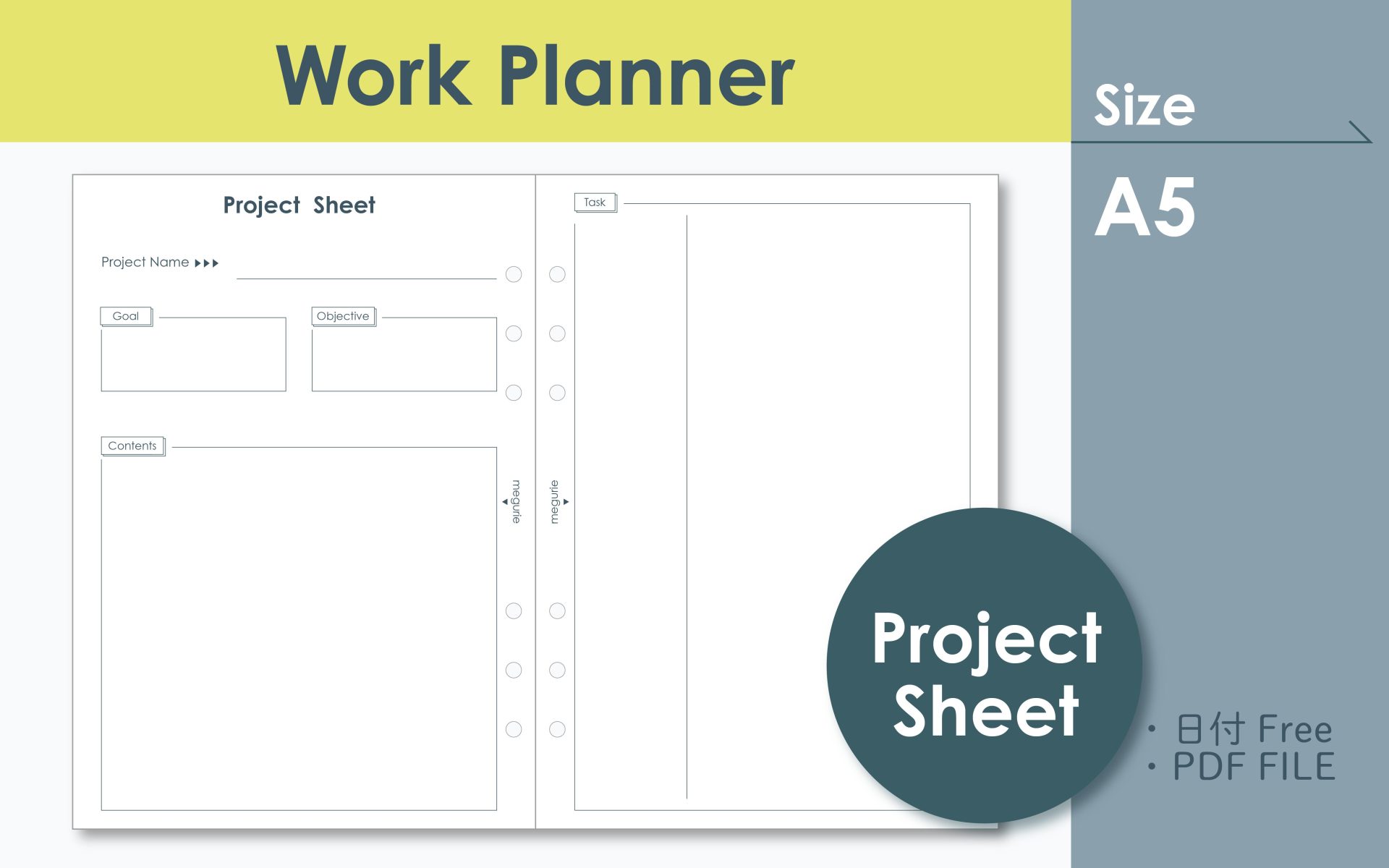 お仕事のプロジェクトごとに、ゴール設定・目標設定から、やるべきことのピックアップとタスク管理までを一連の流れで管理できるプロジェクトシートです。フリーランスでお仕事されている方のプロジェクト管理にピッタリですよ。