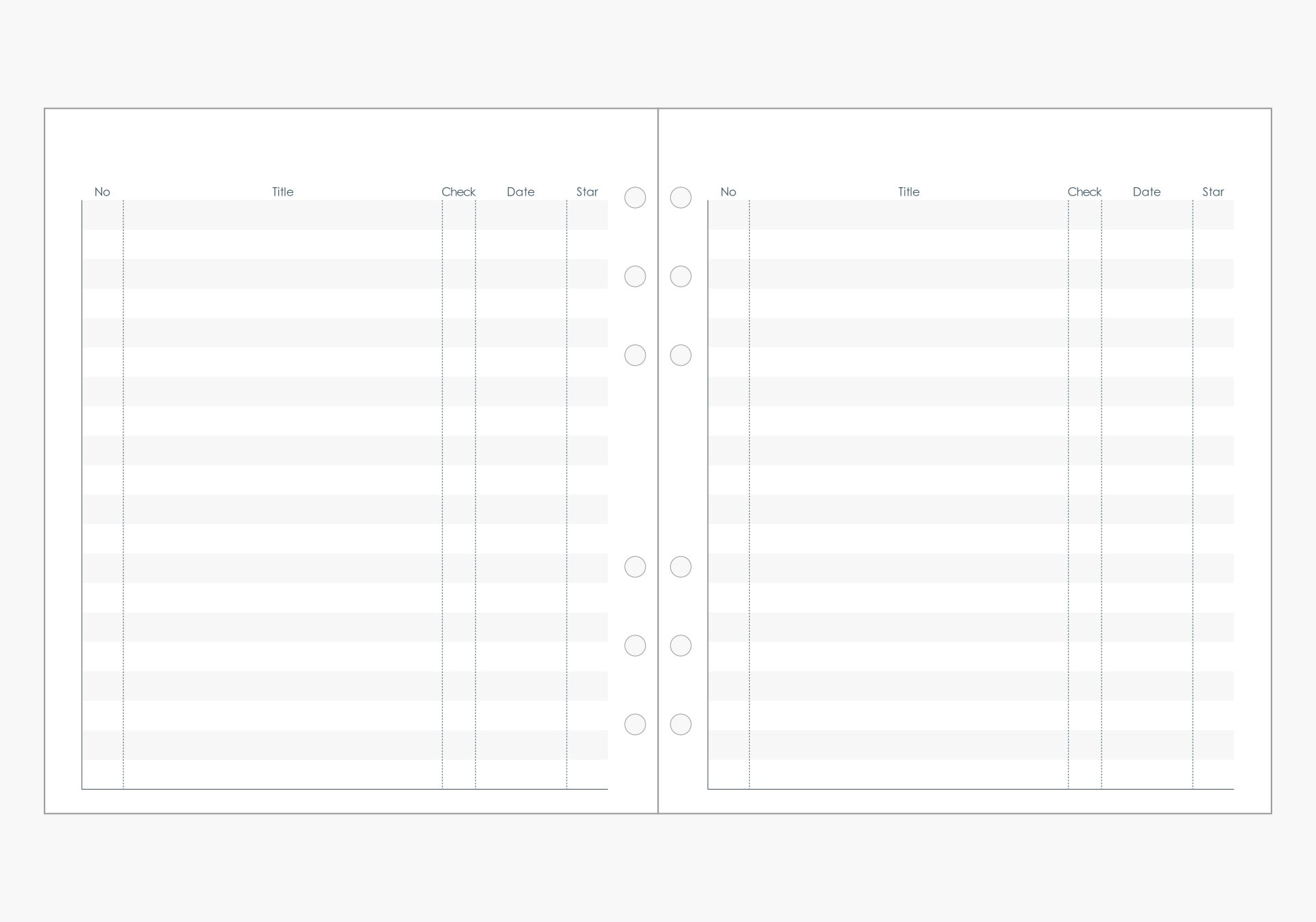 ー 無地のリフィル用紙に印刷いただくか、無地の用紙に印刷し穴を開けてご利用ください ー