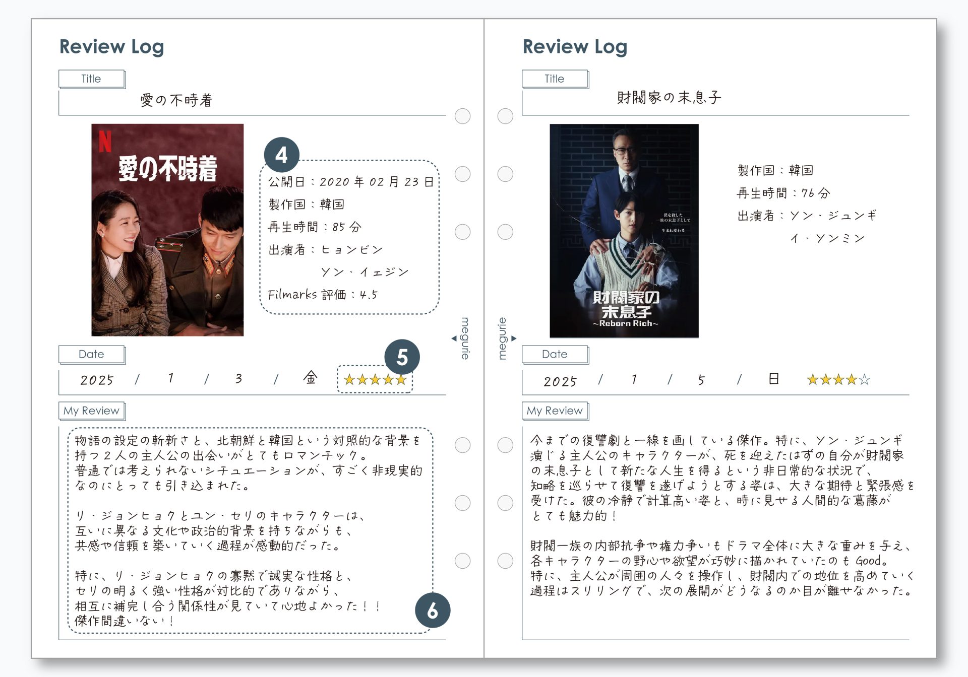 ❹ 視聴した作品の詳細を記入すると、より作品への理解が深まります。