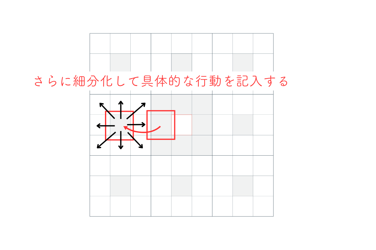さらに細分化して具体的な行動を記入する