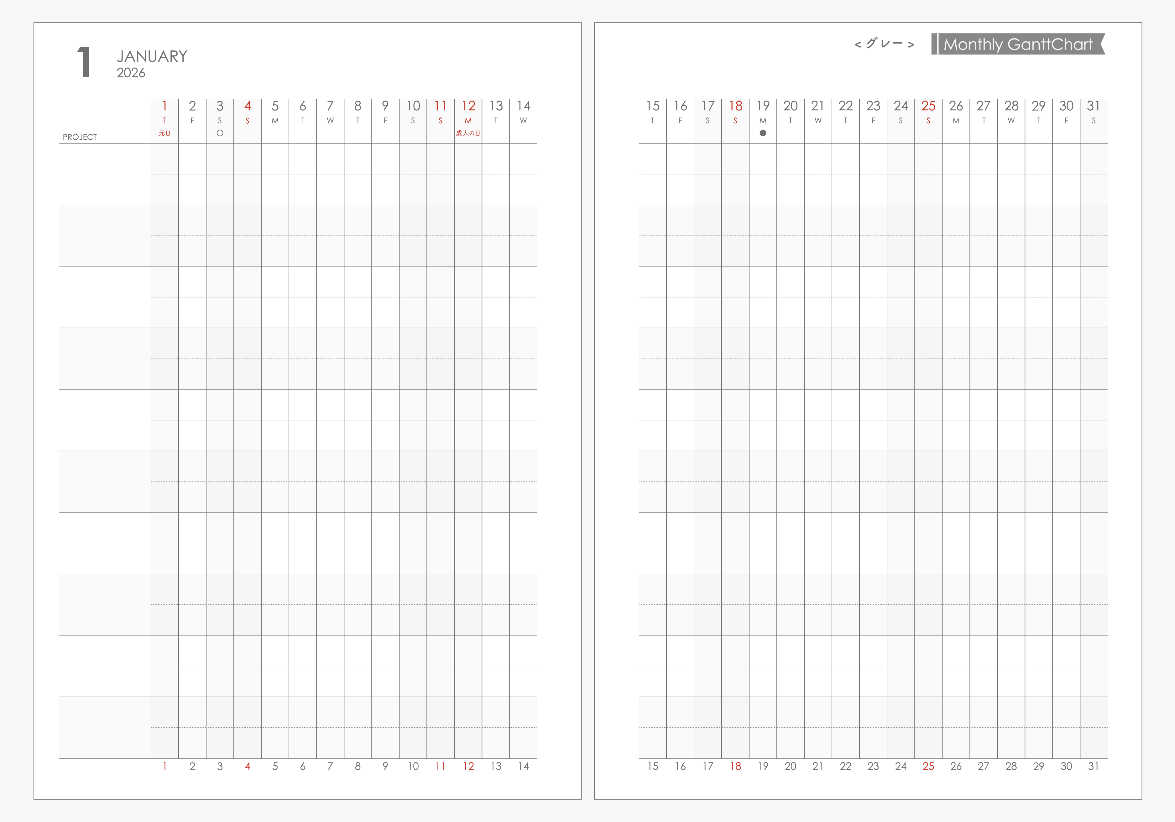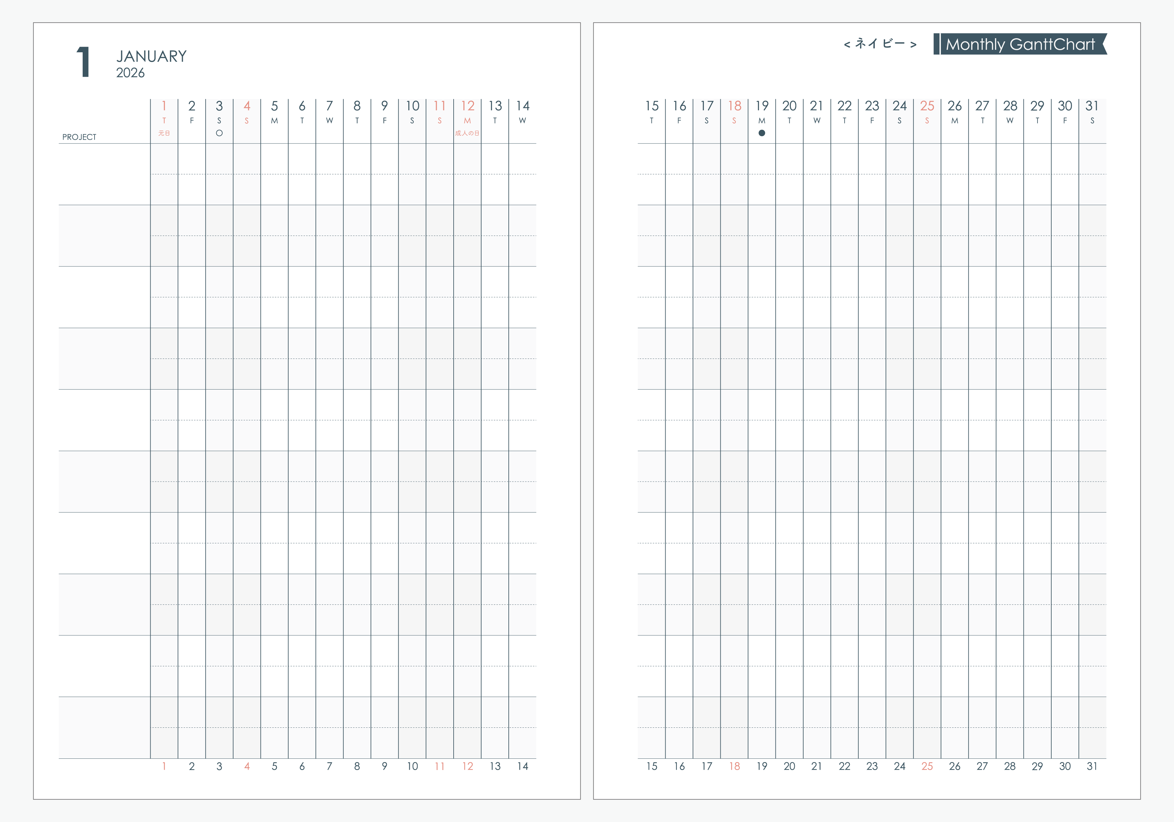 【2026年1月始まり】1ヶ月を横軸で確認できるガントチャート